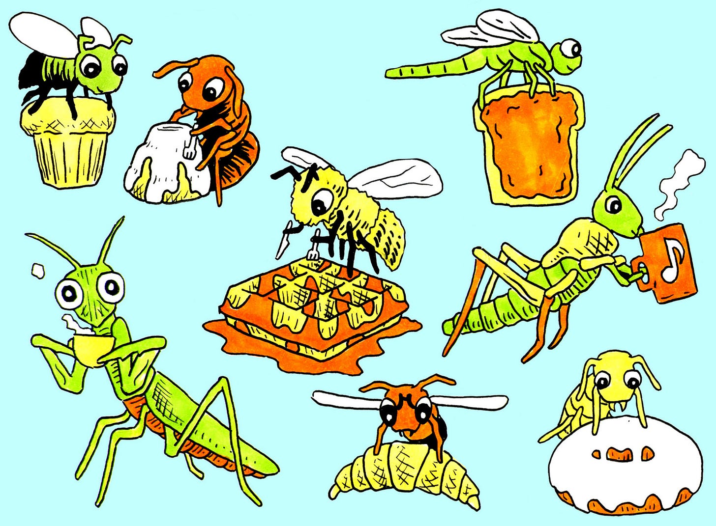 My bugs-and-baking stickers are now available to order wherever you are, whenever you’d like! You can get both The Baking Bugs and their ingredients from my online store. All stickers are printed on high-quality paper (that has yet to wear off in any instance I know of), cut out by the artist himself.