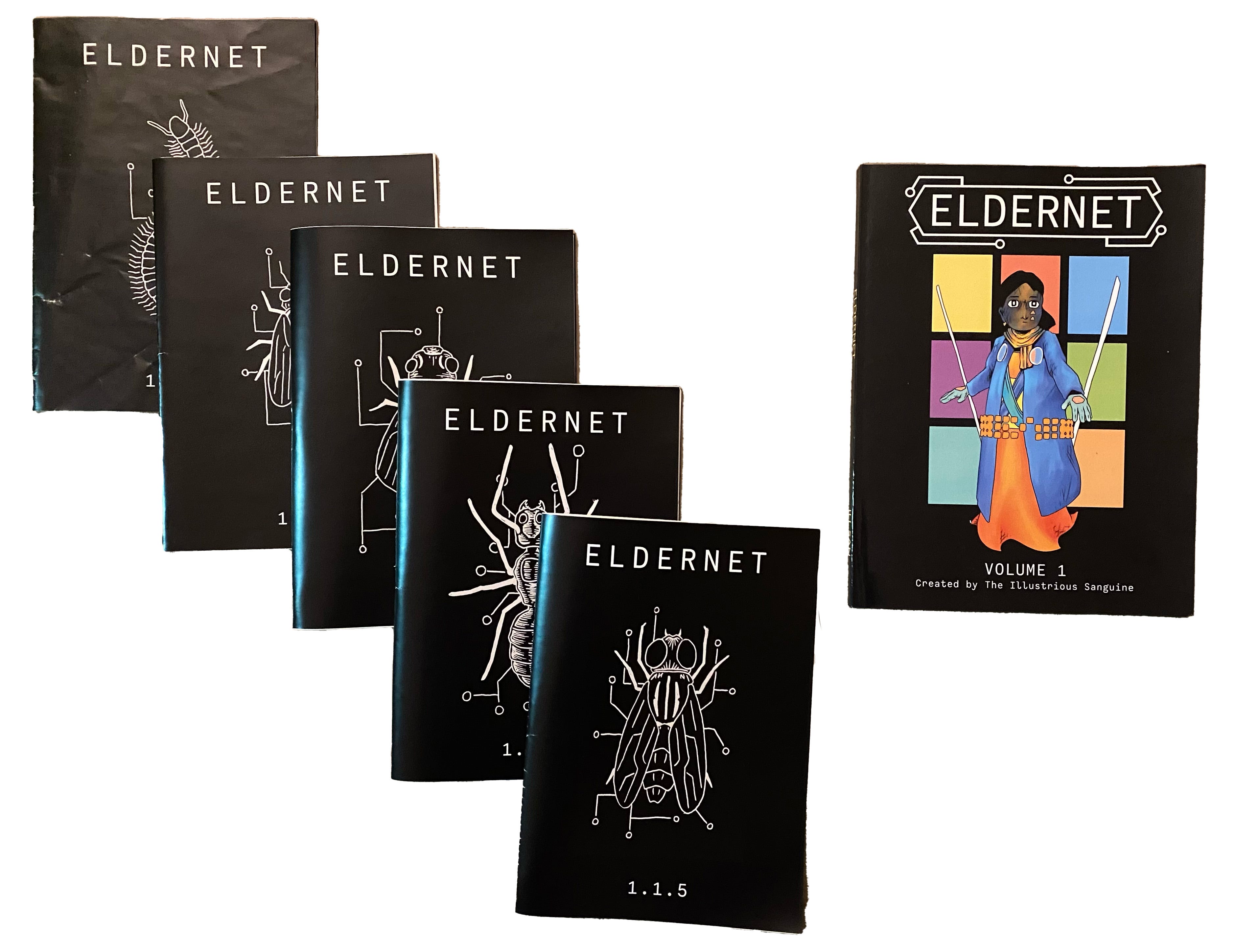 The next update to ELDERNET will be March 17th, 2025. I will spend the time until then trying to improve myself mentally tweaking the script for Volume 2, drawing new pages, posting more info-worldbuilding pages here, and tentatively seeing what options I might have for larger-scale operations in the future.
