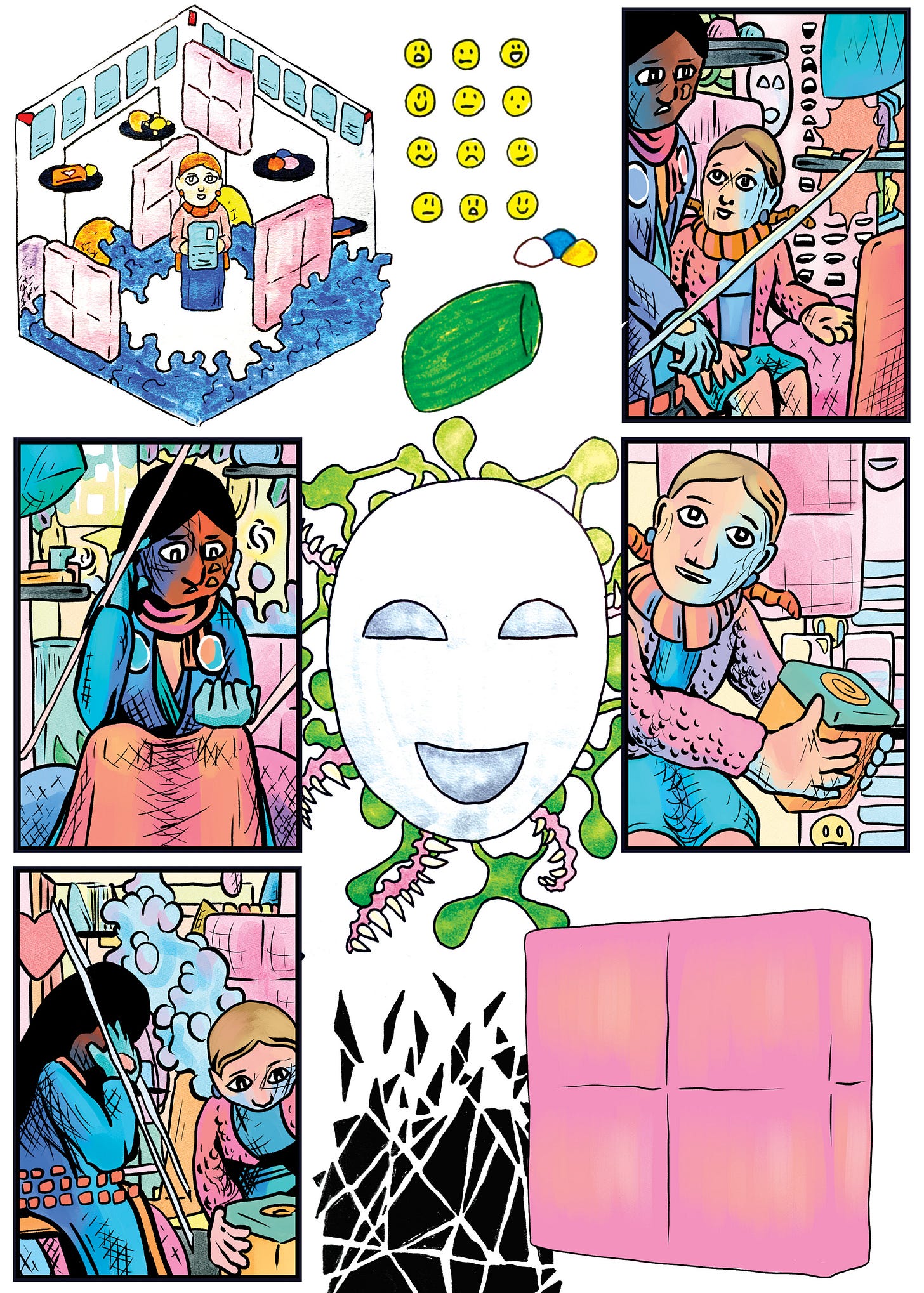 Including SpaceSticks (anxiety), ReMedia (chemical imbalances), FaceFlow (empathy), SweetSleep (insomnia), and SquiSect (anger).