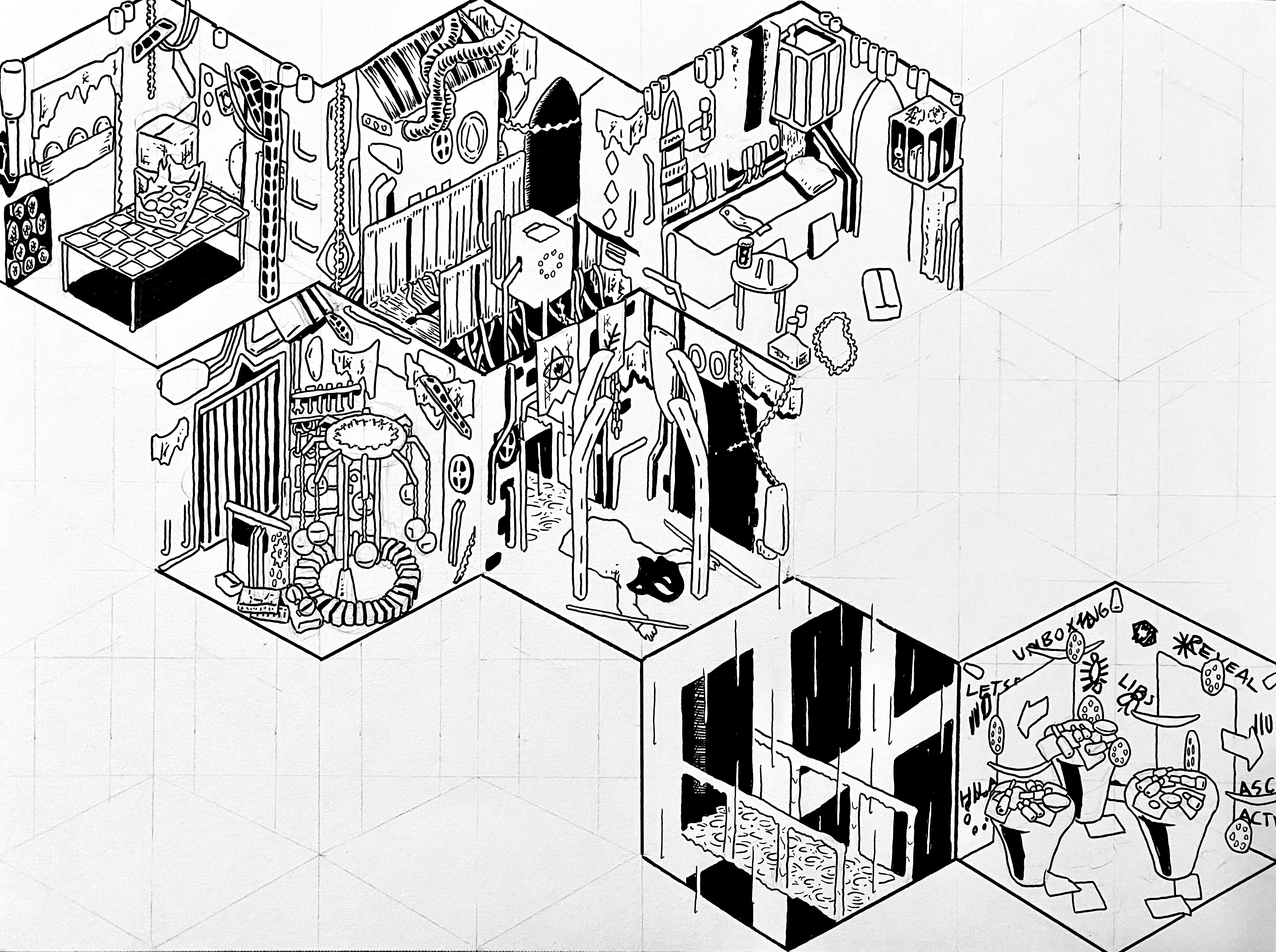 Despite all the maps, character drawings, and concept art I make before starting most of my comics, I tend to work more by referring back to old panels or pages than any of my reference material. For the Ascenkor map, as I reached more recent cells, I found myself forced to rely on only a few pages where the cells in question appear.