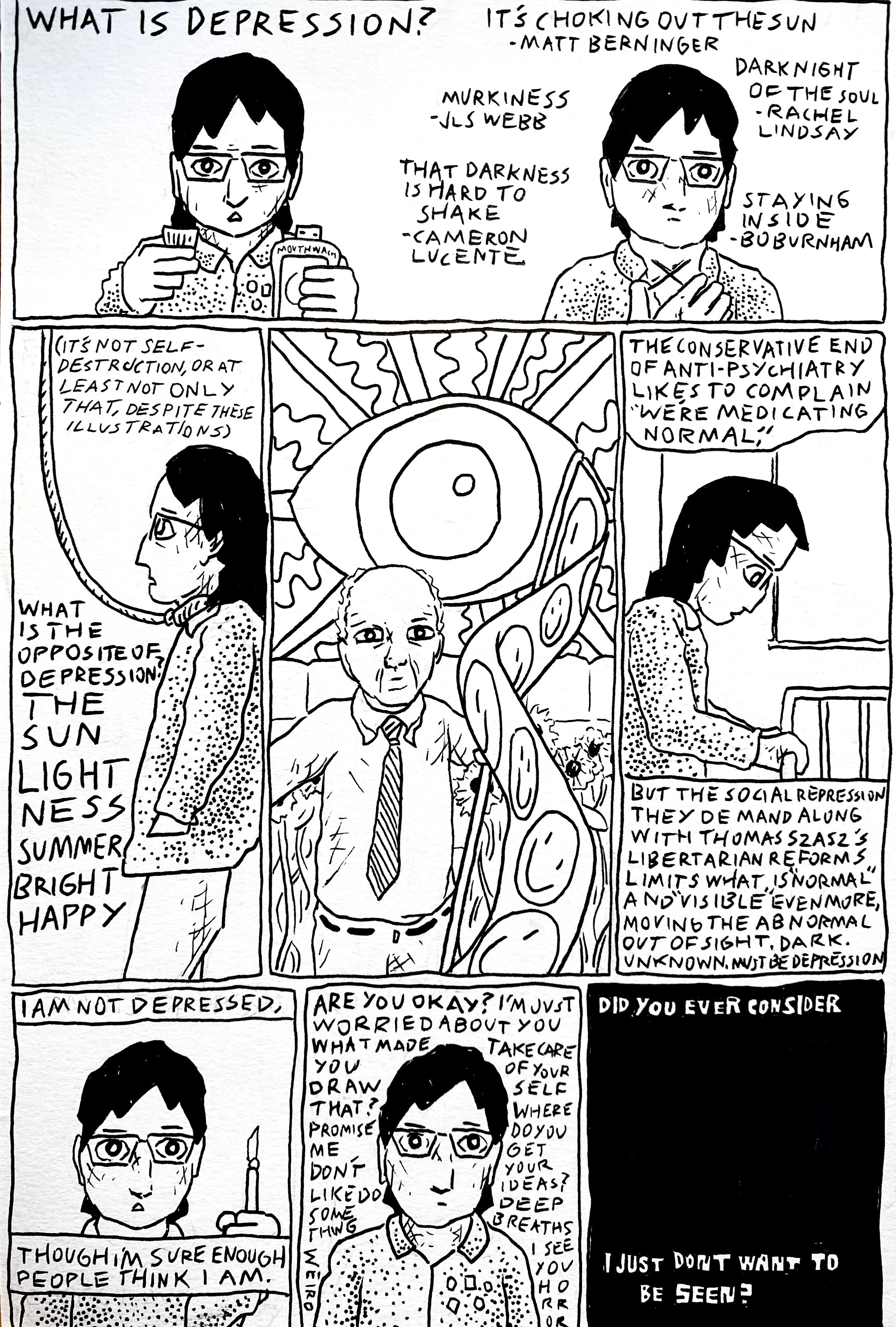 This is also my explanation of why I don’t draw myself the way I actually look in these comics, because I want my work to be seen (why I’m posting it in the first place), but for my self to be unseen.