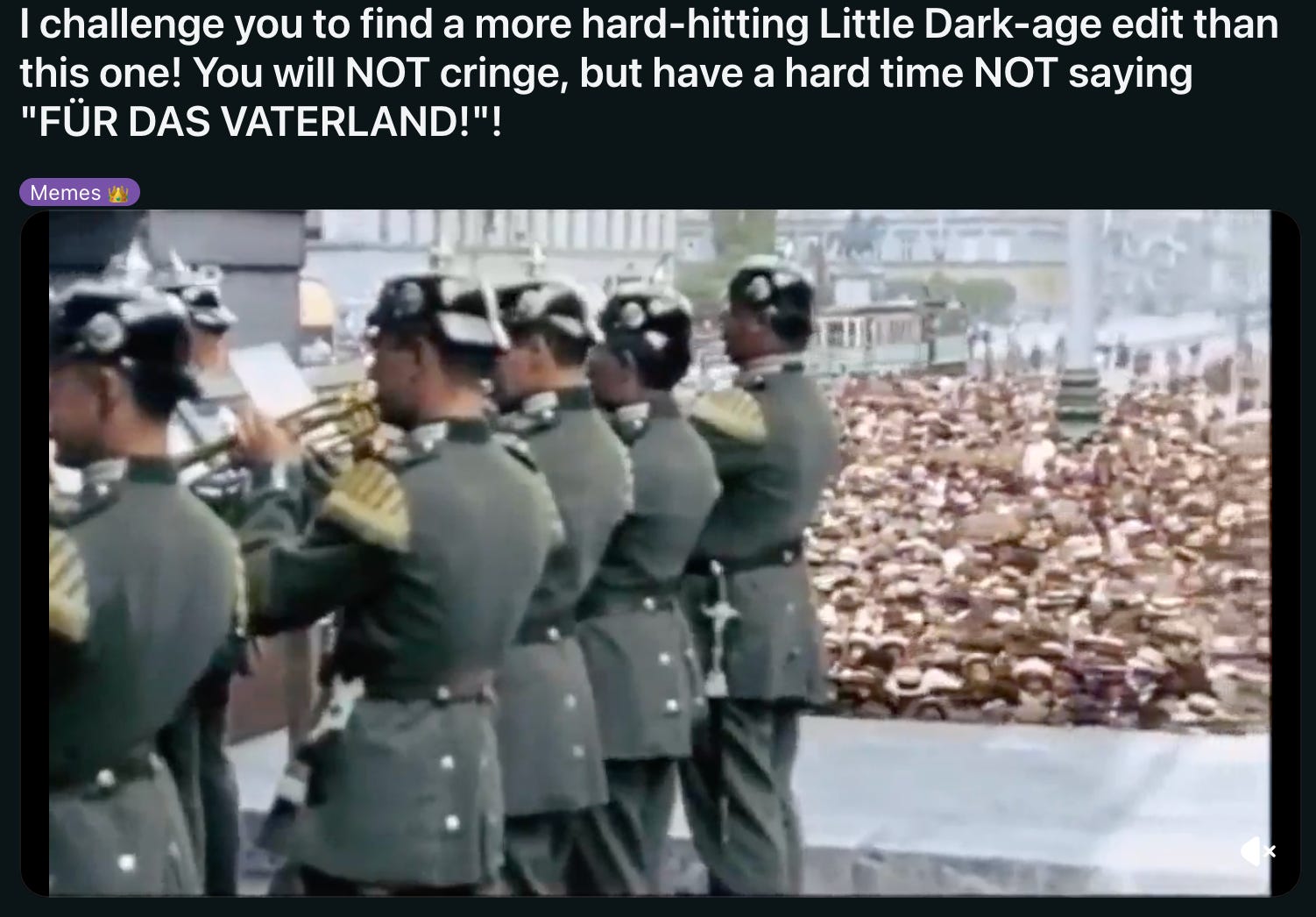 The accelerated decay of etymology and reference not only disconnects memes from their source material, but the internet from a plane of immanence8. The perception of the internet as not a subset of the real but as a transcendent plane, applied to the “situation of politics which fascism is rendering aesthetic,”9 allows fascism to pass one threshold, that of politics, and enter that of the alt-right. In the context of the despotic state or capitalist state, “the object of immune defense is the foreign as such.”10 In the context of the internet, the alt-right does not censor or expel the foreign, but either assimilates or spectates on it. The first process allows it to use a scene from The Matrix symbolizing escape from repression to repress and radicalize members11, or a song about police brutality as background music to fascist content12. The second produces pornographic deepfakes13, AI-generated racist caricatures14, and conspiracy theories. The first makes the targets irrelevant, the second makes them fascinating.